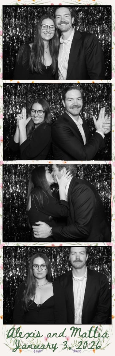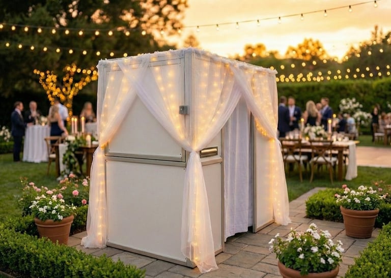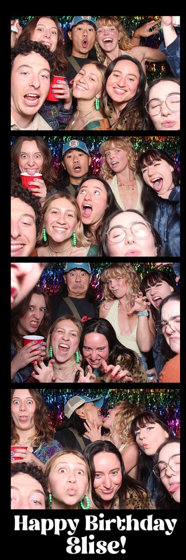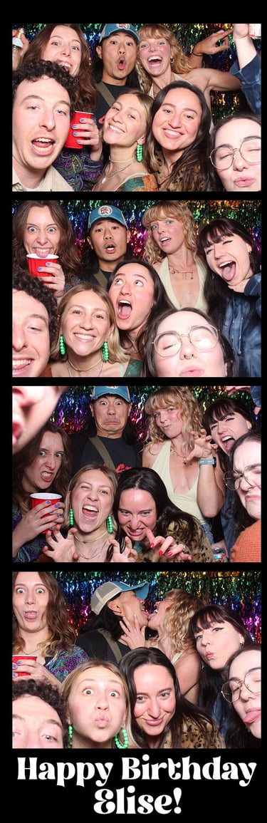 They'll come from inside the booth. The enclosed curtain gives your guests the privacy to actually let loose. No crowd watching, no awkward posing on the dance floor. Just your people, behind the curtain, being themselves. Every group walks out with a printed strip they'll keep forever.