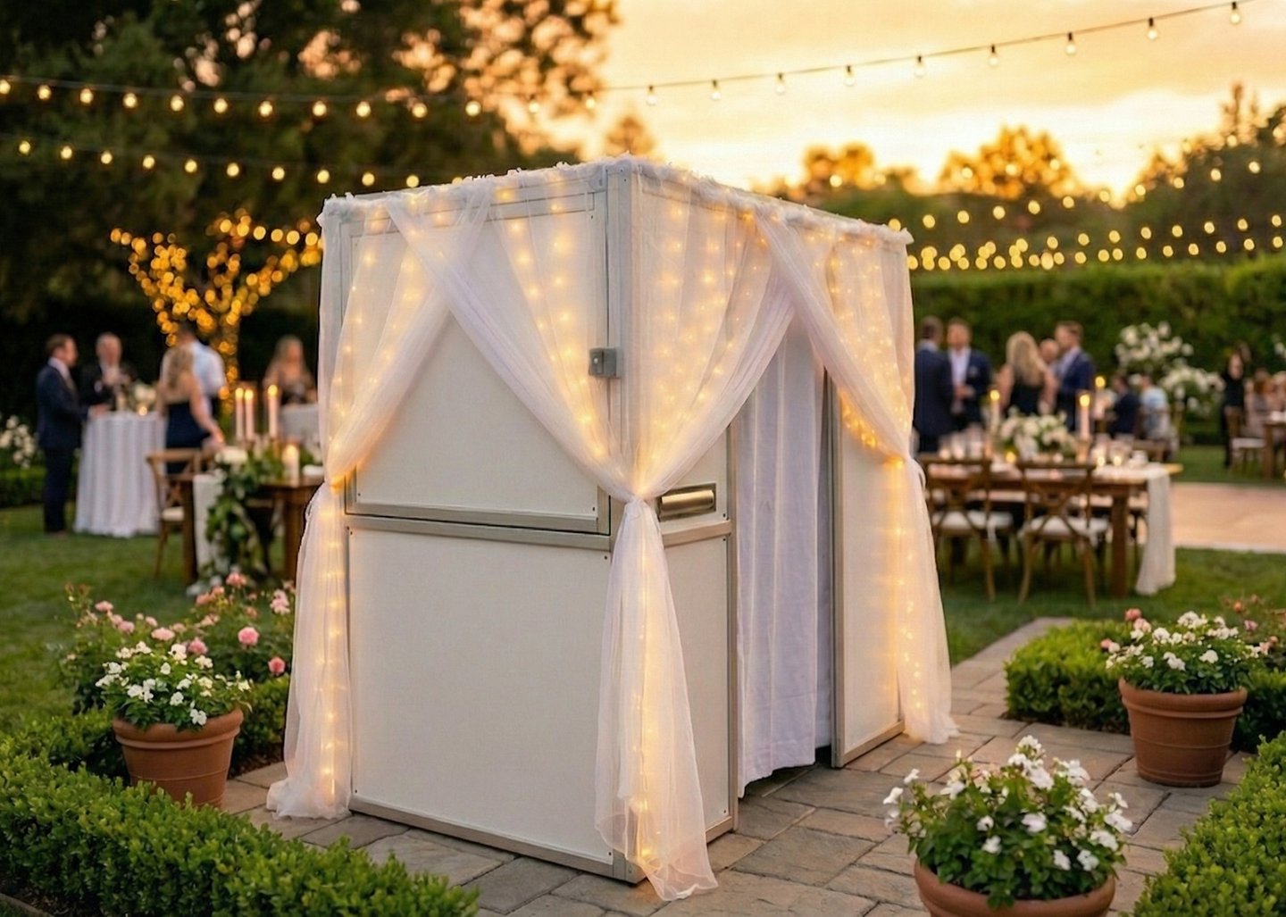 Unlike open-air stations, our enclosed curtain design gives guests the privacy to relax, be silly, and create genuine moments behind the curtain.